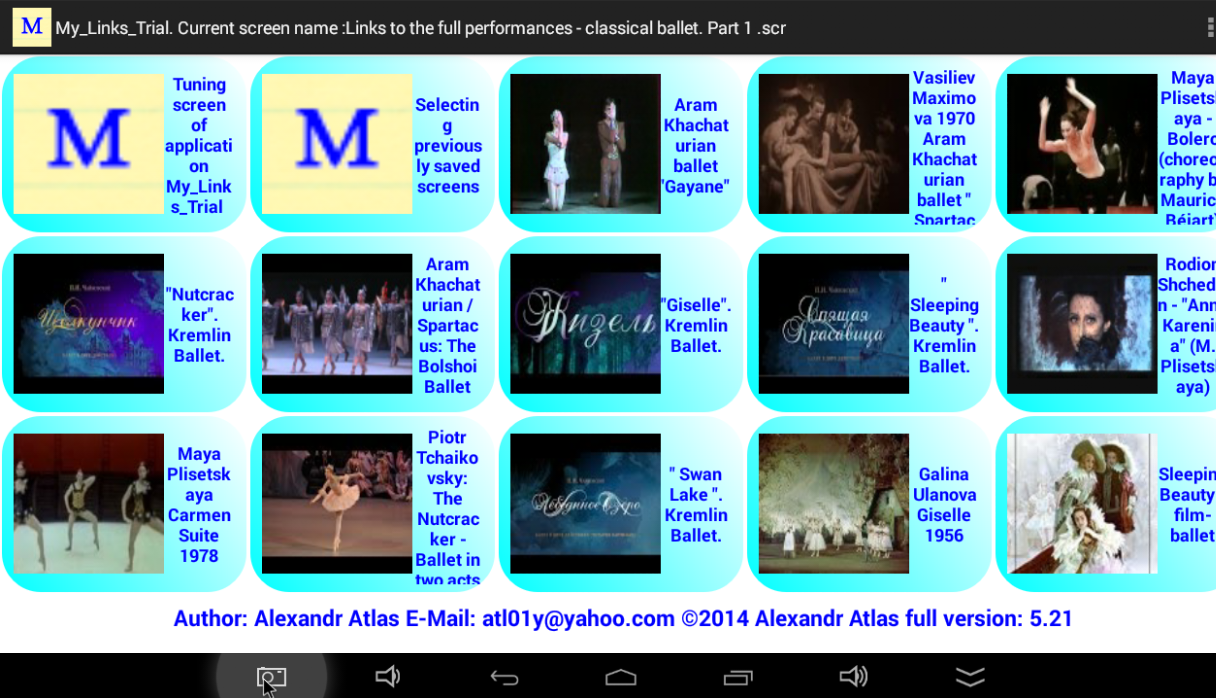 Screen : Links to the full performances - classical ballet. Part 1. Landscape orientation. To DOWNLOAD, click on the screen image.