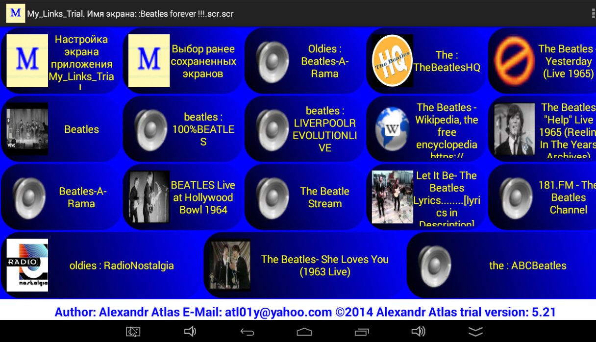 ATTENTION !!! These link screens only work on Android devices and only under the control of the My Links_Trial application. If you are currently on an Android device and you have not installed the My_Links_Trial application, then in order to use the link screens you need to install the FREE version of the application from the Google Play Market.